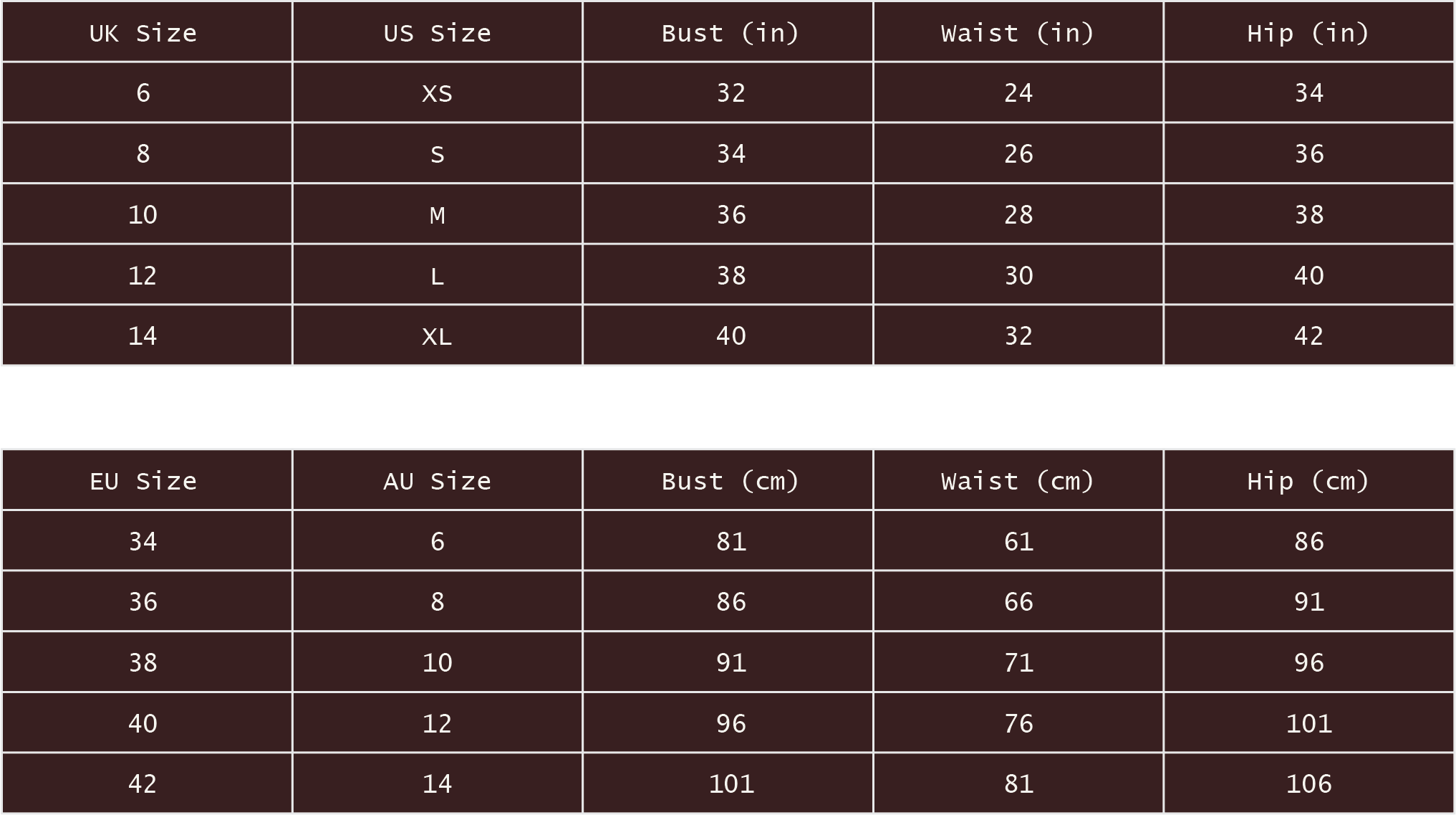 Check our size guide to choose the best fit for you. Some styles may run slightly tighter or looser than the size chart—be sure to check the product description for details. If you’re unsure between two sizes, send us a message, and our team will be happy to assist you in finding the perfect fit!